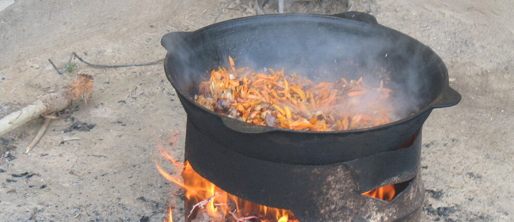 Gekocht wird Paloo gerne in einem Kazan, einem gusseisernen großen Kochtopf oder Kessel.