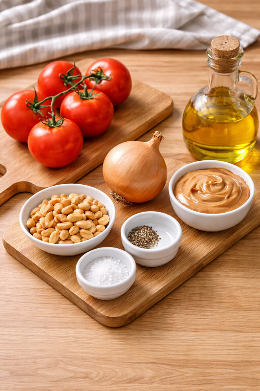 Diese Kombination von Tomaten und Erdnussbutter klingt vielleicht erst einmal etwas ungewöhnlich, schmeckt aber lecker und ist auch nicht schwer zuzubereiten. Und wenn du normalerweise keine Tomaten mögen solltest, vielleicht schmeckt dir ja diese Art der Zubereitung.