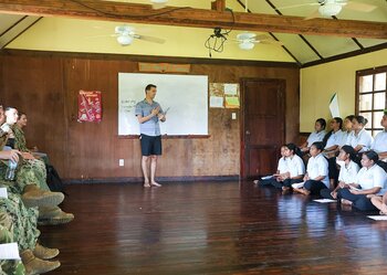 Viele Kinder in Mikronesien wachsen mit mehreren Sprachen auf. Sie sprechen ihre Muttersprache in der Familie und lernen Englisch in der Schule. Das hilft ihnen, sich auch international zu verständigen.