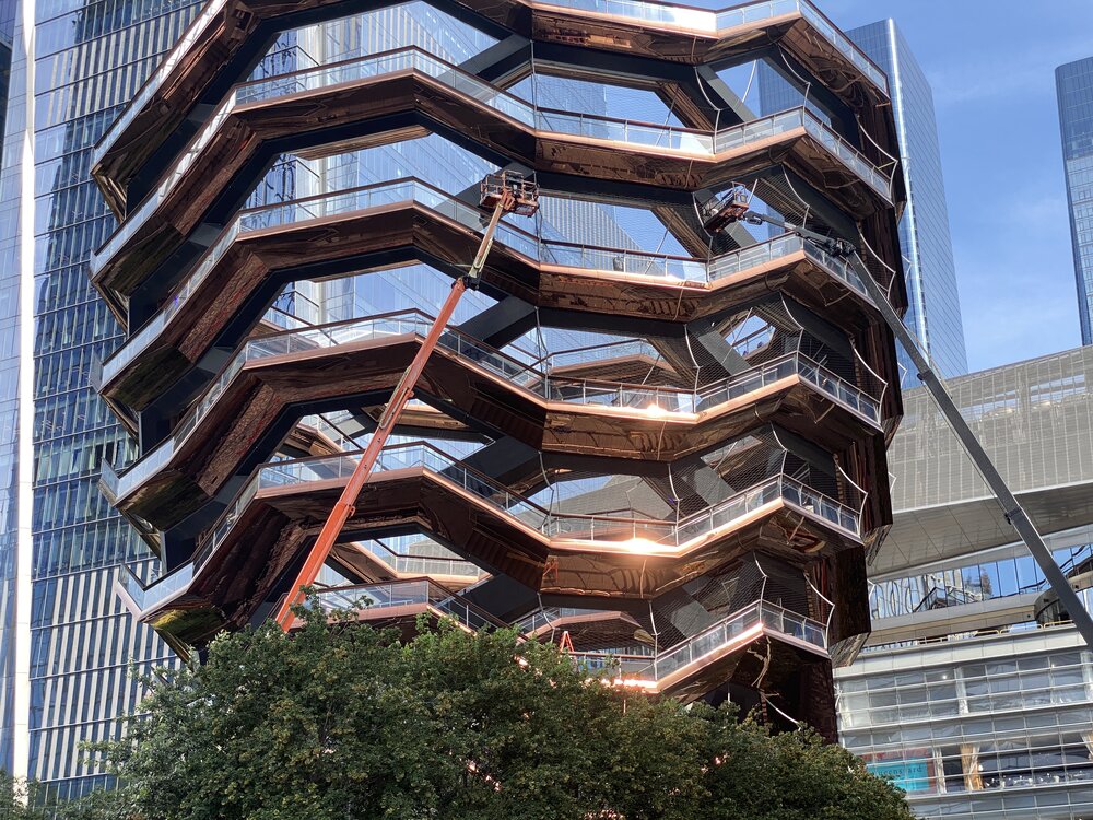 Hier in der Nähe befindet sich auch The Vessel. Das ist ein Gebäude, das nur aus Treppen und Plattformen besteht. Es wurde 2019 eröffnet. Der Eintritt ist kostenlos, man muss aber vorher Tickets buchen.