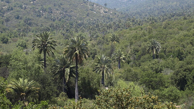 Auch der Seifenrindenbaum (Quillaja), aus dessen Rinde man Seife herstellen kann, und die Pflanze Puya chilensis wachsen hier, wo es warm ist.