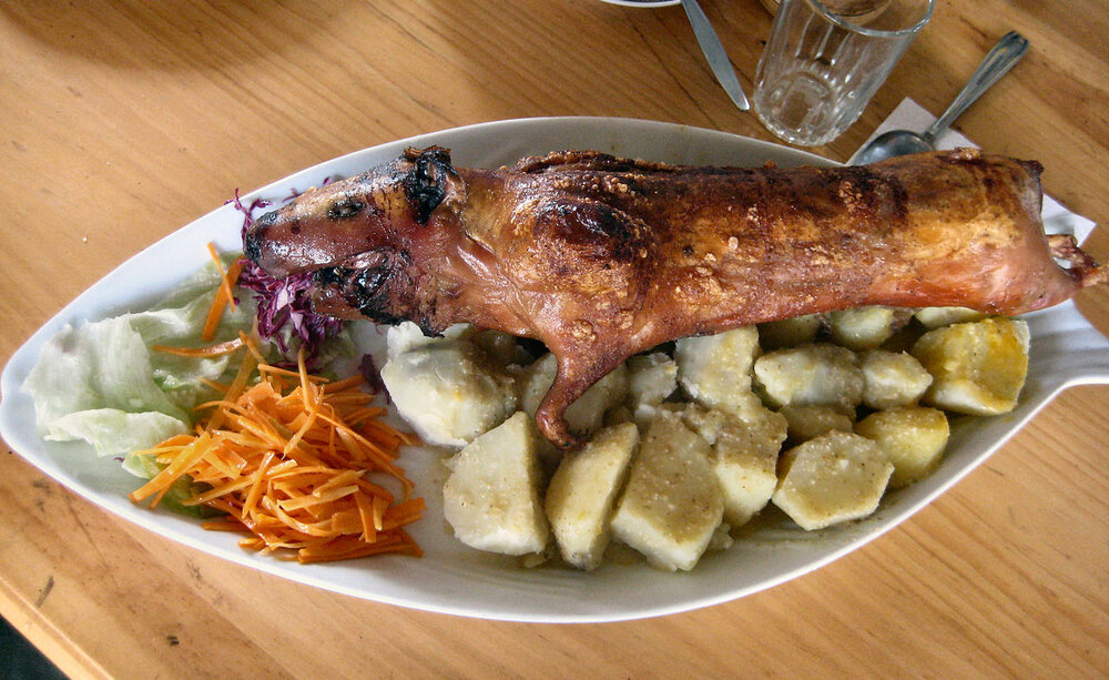 Was du wohl nur als süßes Haustier kennst, wird in Ecuador gerne verspeist. Gegrilltes Meerschweinchen gibt es insbesondere in den Anden zu essen. Dieses Essen hat eine jahrhundertealte Tradition in der Region und auch in Peru und Bolivien isst man es gerne.