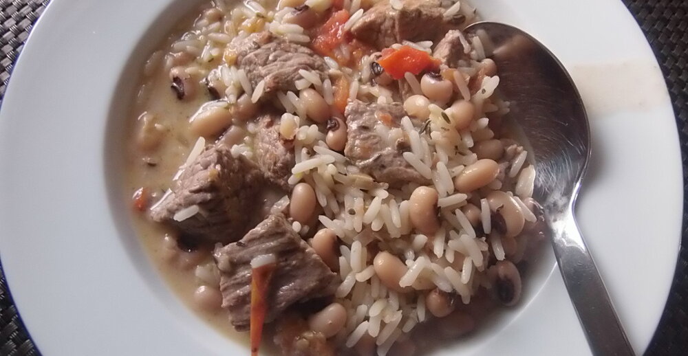 Cook-up steht in Guyana häufig auf dem Tisch! Reis und Bohnen sind die beiden Hauptzutaten