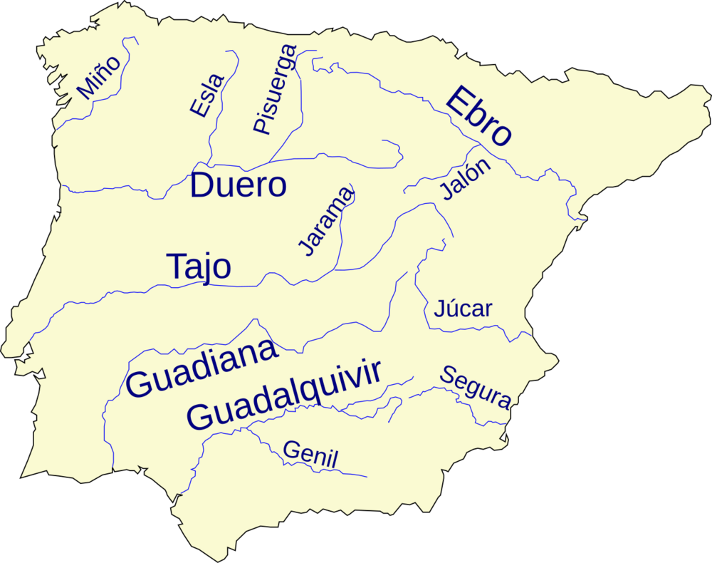 | Große Flüsse: | Ebro, Duero, Tajo (Tejo), Guadiana, Guadalquivir |