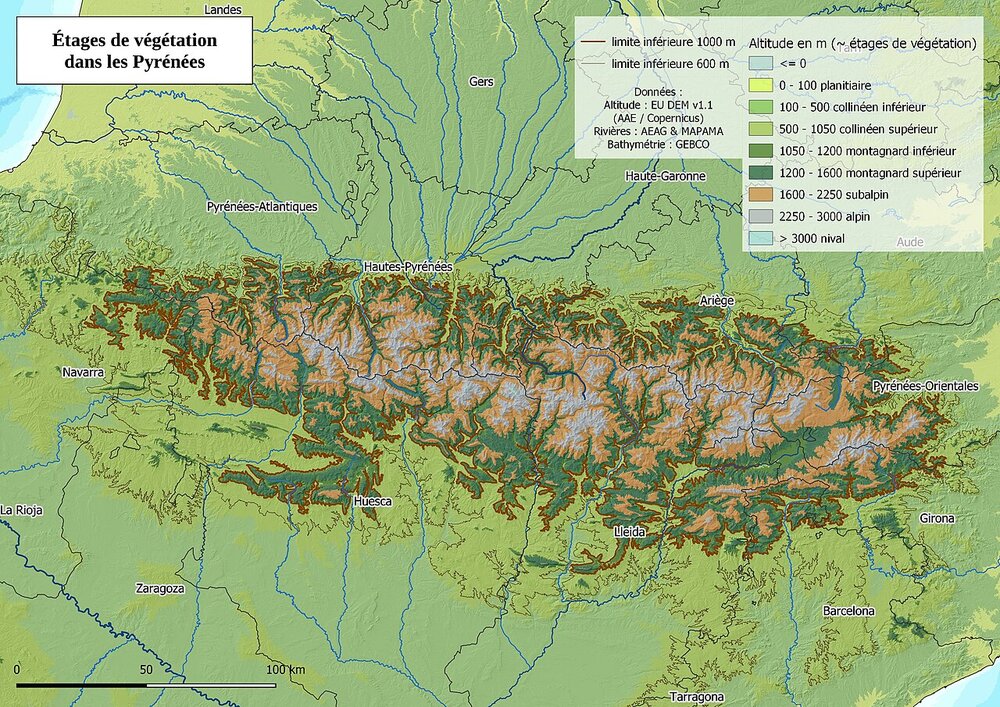 Die Pyrenäen lassen sich einteilen in die westlichen Pyrenäen, Hochpyrenäen und östlichen Pyrenäen.